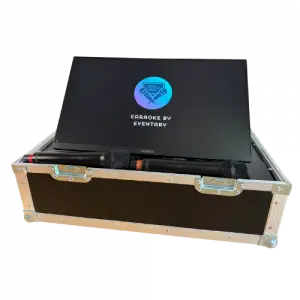 Plug & Play Karaoke Set mit 2 Mikrofonen – einfach anschließen und loslegen. Perfekt für Partys, Firmenfeiern und Events.