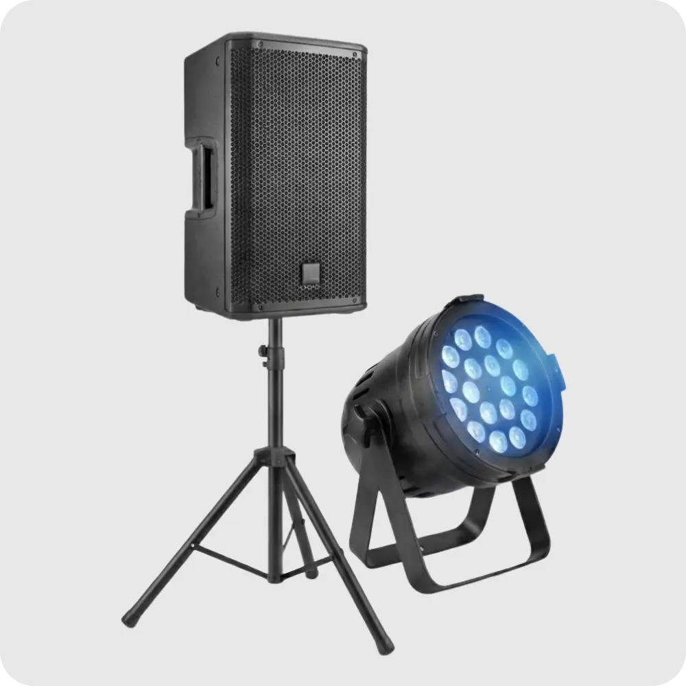 Von Sound- & Lichttechnik über Zubehör bis hin zu ausgewählten Dekoelementen – flexibel kombinierbar und einsatzbereit geliefert.